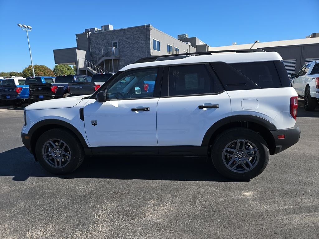 Oxford White 2025 Ford Bronco Sport Big Bend 4WD 8-Speed Automatic 4D Sport Utility This vehicle comes with the following features and options : Convenience Package (Front Driver/Passenger Seat Back Map Pockets, Heated 8-Way Power Driver's Seat, LED Fog Lamps, Premium Wrapped Steering Wheel, and Universal Garage Door Opener (UGDO)), Equipment Group 200A, 4-Wheel Disc Brakes, 6 Speakers, ABS brakes, Air Conditioning, Alloy wheels, AM/FM radio: SiriusXM, AM/FM Stereo, Auto High-beam Headlights, Automatic temperature control, Brake assist, Cloth w/Easy-to-Clean Front Bucket Seats, Compass, Delay-off headlights, Driver door bin, Driver vanity mirror, Dual front impact airbags, Dual front side impact airbags, Electronic Stability Control, Emergency communication system: SYNC 4 911 Assist, Four wheel independent suspension, Front anti-roll bar, Front Bucket Seats, Front Center Armrest, Front License Plate Bracket, Front reading lights, Fully automatic headlights, Heated door mirrors, Illuminated entry, Knee airbag, Low tire pressure warning, Occupant sensing airbag, Outside temperature display, Overhead airbag, Overhead console, Panic alarm, Passenger door bin, Passenger vanity mirror, Power door mirrors, Power steering, Power windows, Radio data system, Rear anti-roll bar, Rear Parking Sensors, Rear reading lights, Rear seat center armrest, Rear window defroster, Rear window wiper, Remote keyless entry, Security system, SiriusXM, Speed control, Speed-sensing steering, Speed-Sensitive Wipers, Split folding rear seat, Steering wheel mounted audio controls, SYNC 4 w/Enhanced Voice Recognition, Tachometer, Telescoping steering wheel, Tilt steering wheel, Traction control, Trip computer, Variably intermittent wipers, and Wheels: 17 Carbonized Gray-Painted Aluminum.