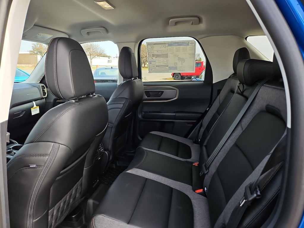 Velocity Blue Metallic 2026 Ford Bronco Sport Big Bend 4WD 8-Speed Automatic 4D Sport Utility This vehicle comes with the following features and options : Bronze Package (All Weather Floor Liners with Bronze Accents, Body-Color Door Handles, Bronze Badges, Bronze Vent Fender, Cargo Mat with Bronze Accents, Front Driver/Passenger Seat Back Map Pockets, Painted Shadow Black Roof, Premium Trimmed Front Sport Contour Bucket Seats, Premium Wrapped Steering Wheel, and Wheels: 17 Sinister Bronze-Painted Aluminum), Convenience Package (Heated 8-Way Power Driver's Seat and LED Fog Lamps), Equipment Group 200A Standard Package (AM/FM Stereo, Cloth with Easy-to-Clean Front Bucket Seats, SiriusXM with 360L, SYNC 4 with Enhanced Voice Recognition, and Wheels: 17 Carbonized Gray Painted Aluminum), Ford Connectivity Package (1-Year Included), Internet access capable: 5G Modem - Ford Connectivity Package, 4-Wheel Disc Brakes, 6 Speakers, ABS brakes, Air Conditioning, Alloy wheels, AM/FM radio: SiriusXM with 360L, Apple CarPlay/Android Auto, Auto High-beam Headlights, Automatic temperature control, Brake assist, Carbon Black Grille with Black Painted BRONCO Lettering, Compass, Delay-off headlights, Driver door bin, Driver vanity mirror, Dual front impact airbags, Dual front side impact airbags, Electronic Stability Control, Emergency communication system: SYNC 4 911 Assist, Exterior Parking Camera Rear, Four wheel independent suspension, Front anti-roll bar, Front Bucket Seats, Front Center Armrest, Front License Plate Bracket, Front reading lights, Fully automatic headlights, Heated door mirrors, Illuminated entry, Knee airbag, Liftgate with Black BRONCO SPORT Lettering, Low tire pressure warning, Occupant sensing airbag, Outside temperature display, Overhead airbag, Overhead console, Panic alarm, Passenger door bin, Passenger vanity mirror, Power door mirrors, Power steering, Power windows, Radio data system, Rear anti-roll bar, Rear Parking Sensors, Rear reading lights, Rear seat center armrest, Rear window defroster, Rear window wiper, Remote keyless entry, Security system, Speed control, Speed-sensing steering, Speed-Sensitive Wipers, Split folding rear seat, Steering wheel mounted audio controls, Tachometer, Telescoping steering wheel, Tilt steering wheel, Traction control, Trip computer, and Variably intermittent wipers.