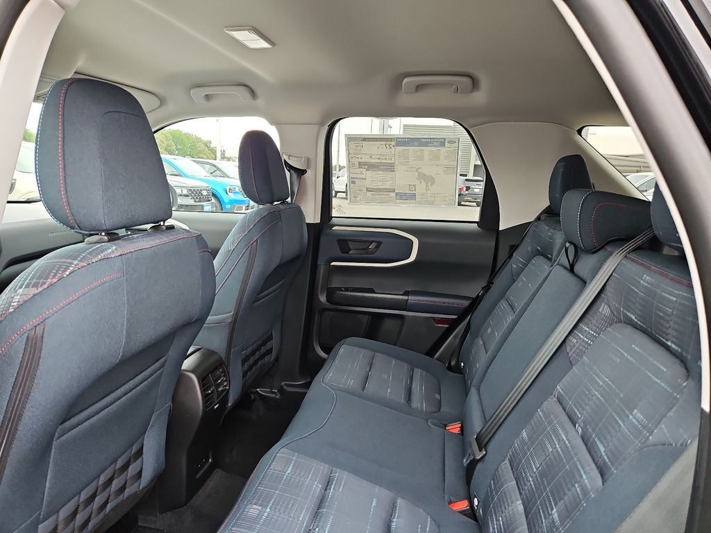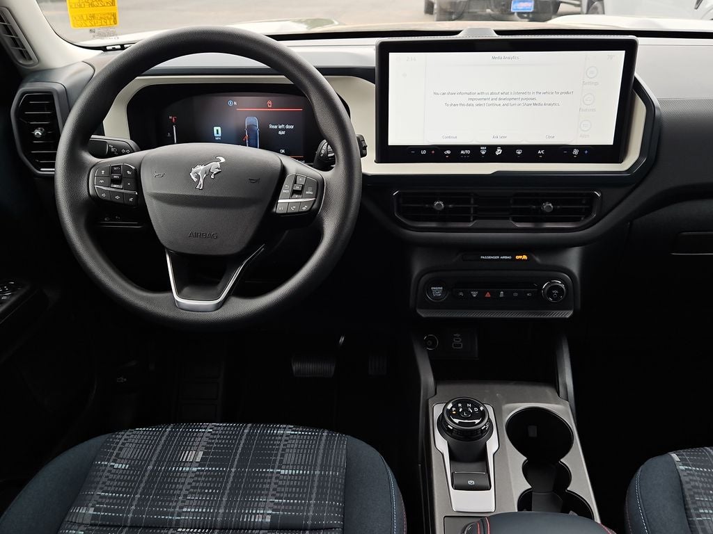 Shadow Black 2026 Ford Bronco Sport Heritage 4WD 8-Speed Automatic 4D Sport Utility This vehicle comes with the following features and options : Equipment Group 250A Standard Package (AM/FM Stereo, Front Driver/Passenger Seat Back Map Pockets, Plaid Cloth Front Bucket Seats, SiriusXM with 360L, SYNC 4 with Enhanced Voice Recognition, and Wheels: 17 Oxford White-Painted Aluminum), Ford Connectivity Package (1-Year Included), Internet access capable: 5G Modem - Ford Connectivity Package, 2nd Row Carpeted Seatback, 4-Wheel Disc Brakes, 6 Speakers, ABS brakes, Air Conditioning, Alloy wheels, AM/FM radio: SiriusXM with 360L, Apple CarPlay/Android Auto, Auto High-beam Headlights, Automatic temperature control, Brake assist, Compass, Delay-off headlights, Driver door bin, Driver vanity mirror, Dual front impact airbags, Dual front side impact airbags, Electronic Stability Control, Emergency communication system: SYNC 4 911 Assist, Exterior Parking Camera Rear, Four wheel independent suspension, Front anti-roll bar, Front Bucket Seats, Front Center Armrest, Front License Plate Bracket, Front reading lights, Fully automatic headlights, Heated door mirrors, Illuminated entry, Knee airbag, Low tire pressure warning, Occupant sensing airbag, Outside temperature display, Overhead airbag, Overhead console, Panic alarm, Passenger door bin, Passenger vanity mirror, Power door mirrors, Power steering, Power windows, Radio data system, Rear anti-roll bar, Rear Parking Sensors, Rear reading lights, Rear seat center armrest, Rear window defroster, Rear window wiper, Remote keyless entry, Security system, Speed control, Speed-sensing steering, Speed-Sensitive Wipers, Split folding rear seat, Steering wheel mounted audio controls, Tachometer, Telescoping steering wheel, Tilt steering wheel, Traction control, Trip computer, and Variably intermittent wipers.